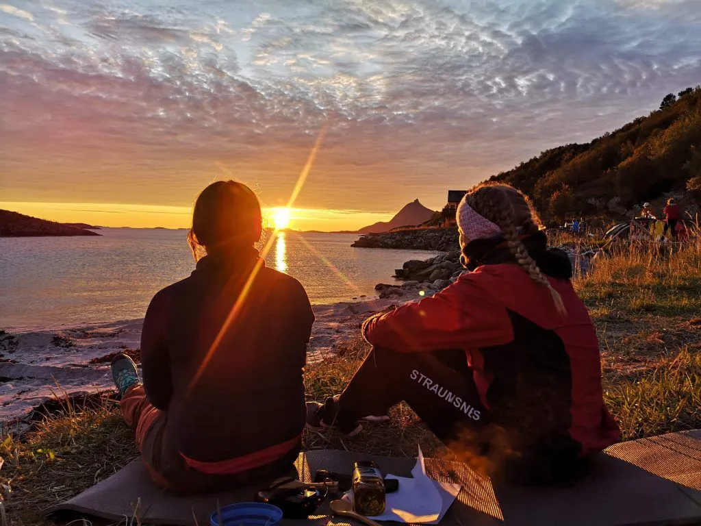 Skolen har ellers en fantastisk beliggenhet for turer, enten du er ute etter en skikkelig utfordring eller du har mest lyst til å tusle av gårde. Både kyst og høyfjell er i umiddelbar nærhet, og det er mange merkede turløyper og toppturer å velge mellom. Du kan sette deg i kajakken like nedenfor skolen, fyre bål i fjæra eller jogge opp på fjellet om du heller vil det.
